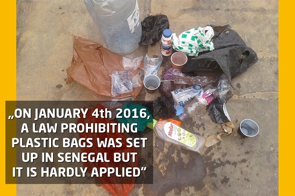 Being a friend of nature I try to avoid the use of plastic waste as much as possible. On January 4th 2016, a law prohibiting plastic bags was set up in Senegal but it is hardly applied. But I think the state has a great deal of responsibility for this problem. But still in the street, in the shops, at the market, there are thousands of plastic items that are used every day, and thrown on the ground to the great misfortune of the environment and the landscape. As the law is not really implemented by the state, we as population should also take responsibility and try to find alternatives and stop using plastics.